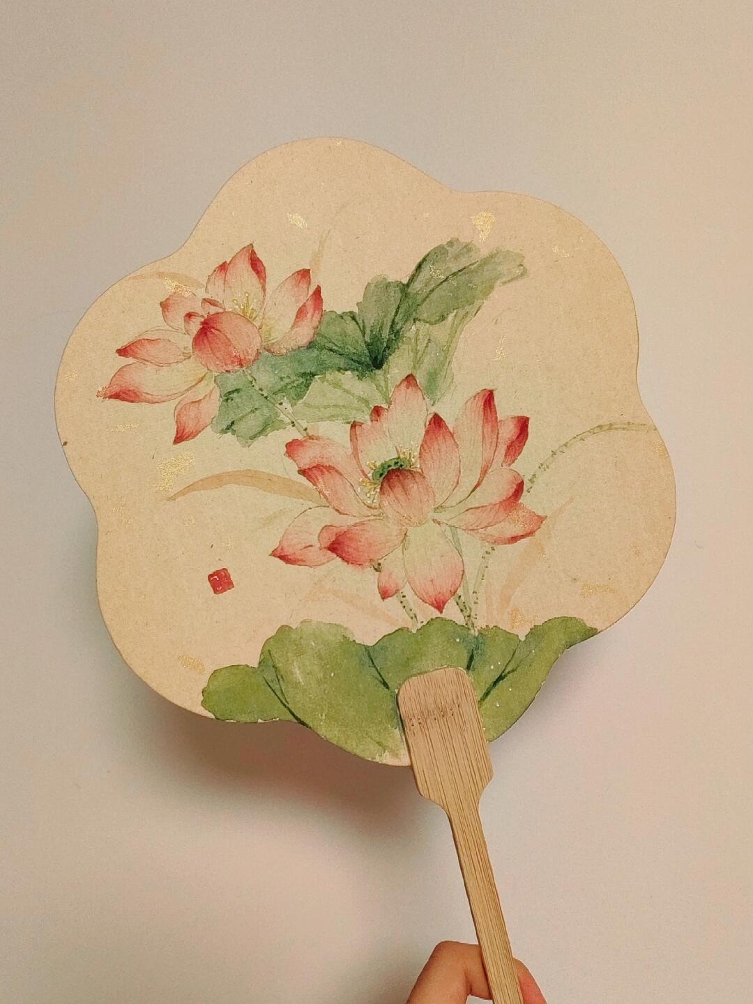 夏日荷花别样红,夏天怎能不画荷花呢? #团扇手作 #古风扇子