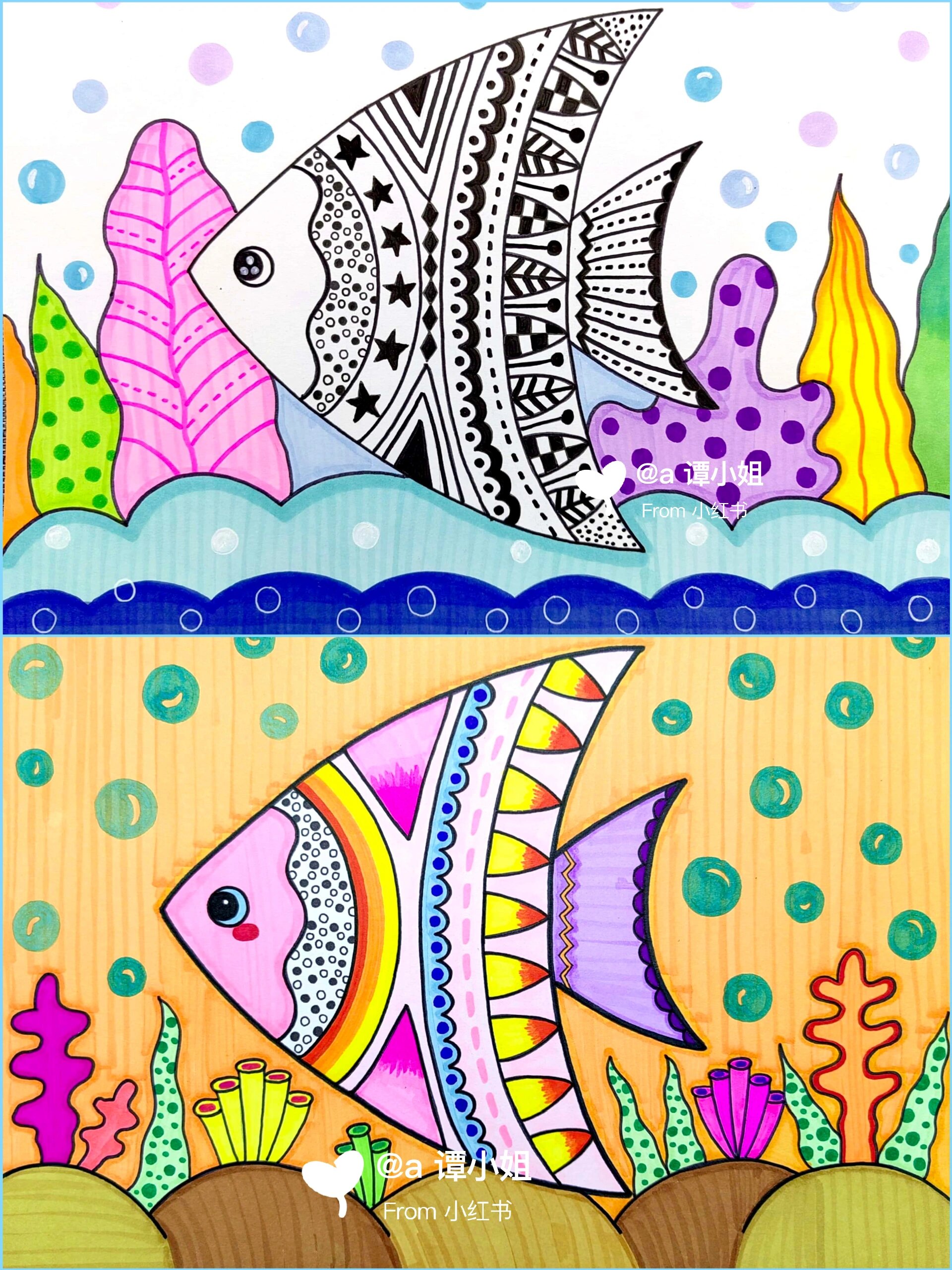 鱼见儿童创意画.当鱼儿遇见童真画笔,海洋化作童话乐园!五彩斑