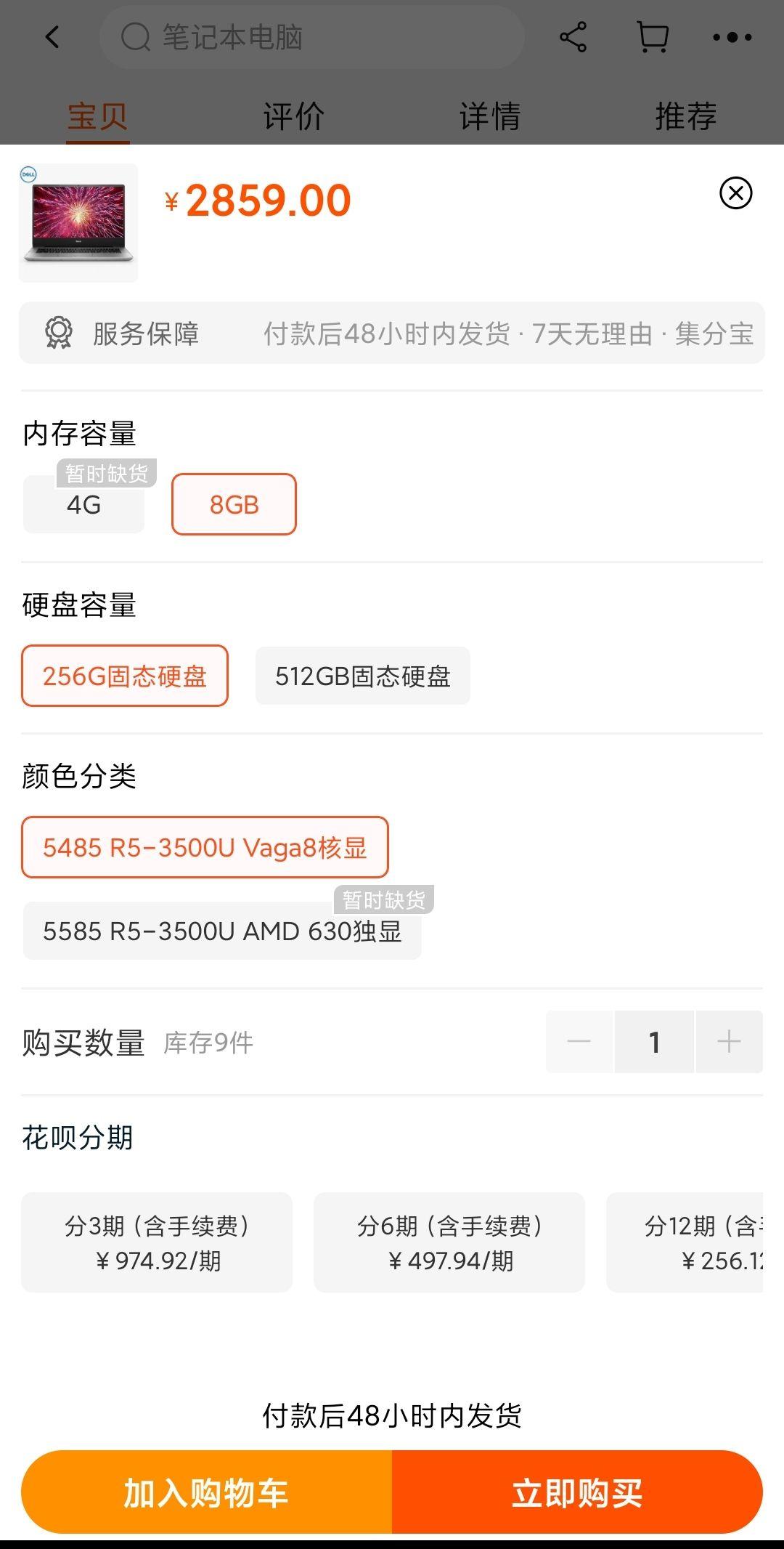 戴尔灵越5485 配置r5 3500u 4核心8线程,8g