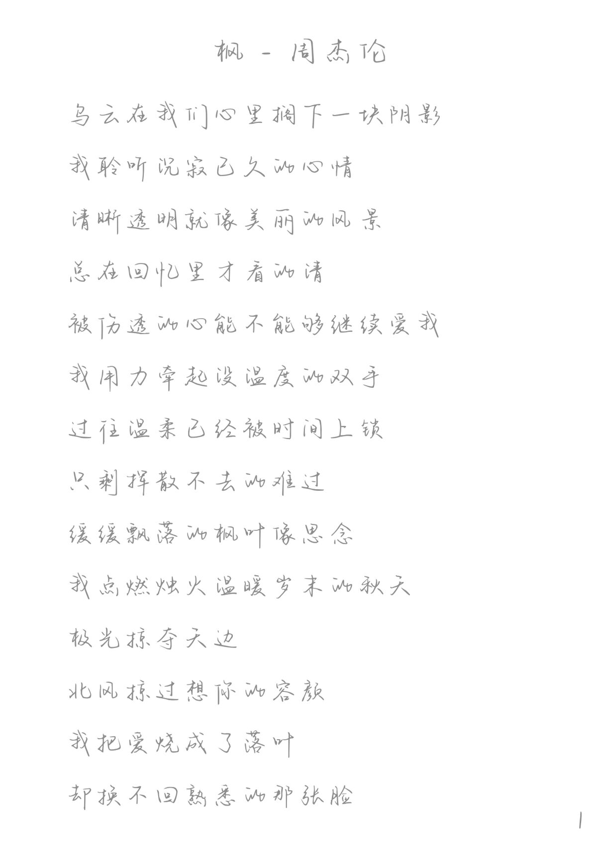 #手写歌词 #周杰伦 #歌曲枫