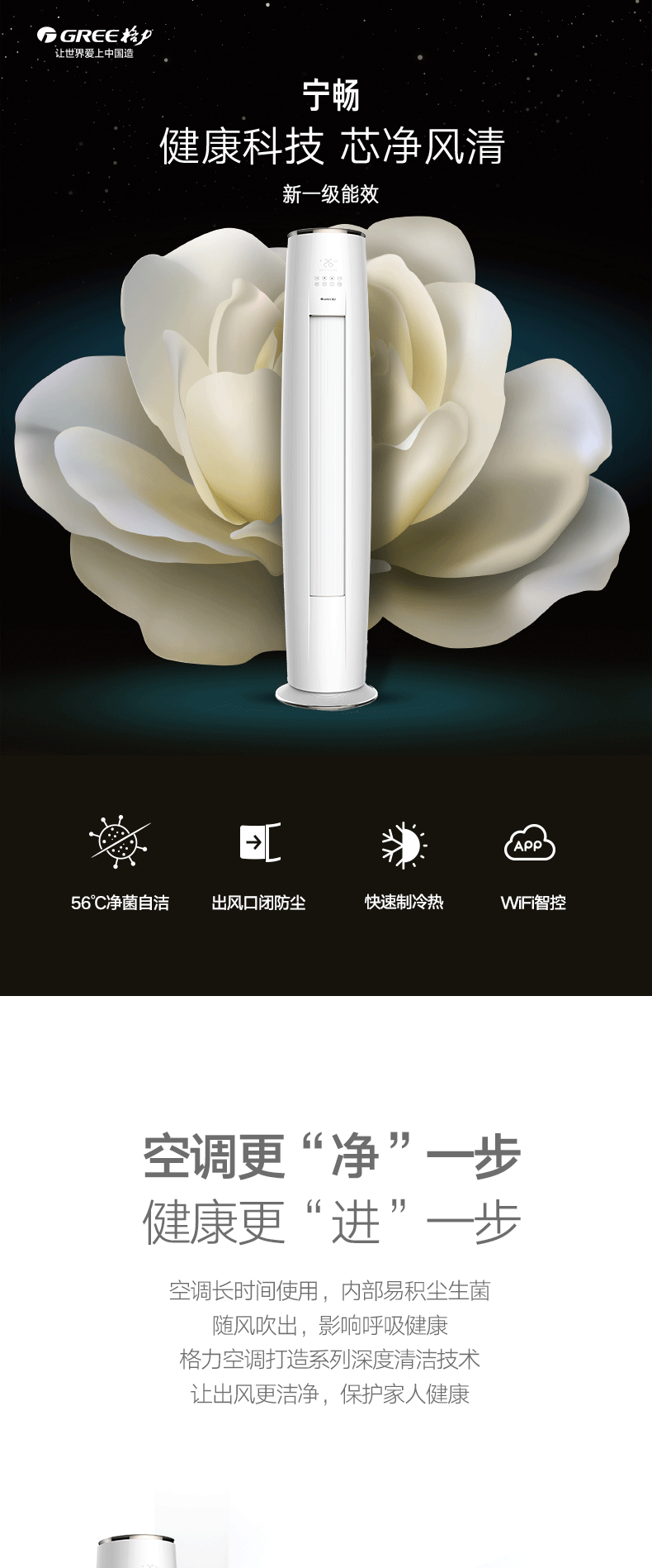 格力gree3匹变频kfr72lw72556fnhaaa1宁畅1级能效冷暖柜机空调