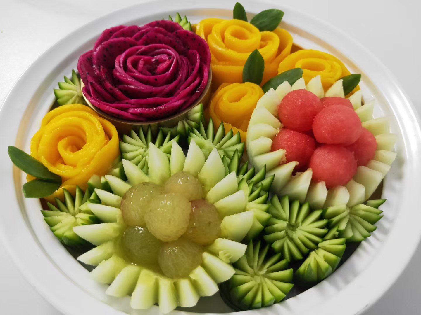 火龙果和葡萄花式拼盘