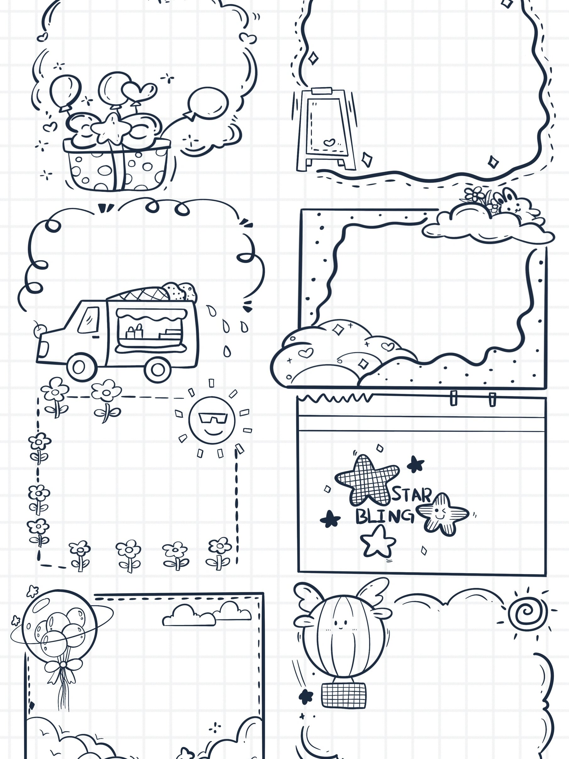 卡通边框‖云朵主题手绘简笔画免抠素材