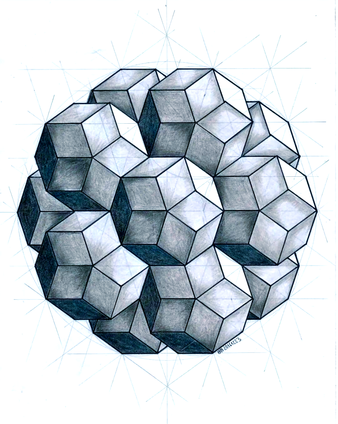 素描默写.几何图形,二十年前学的,现在还记得,算是对得起当年