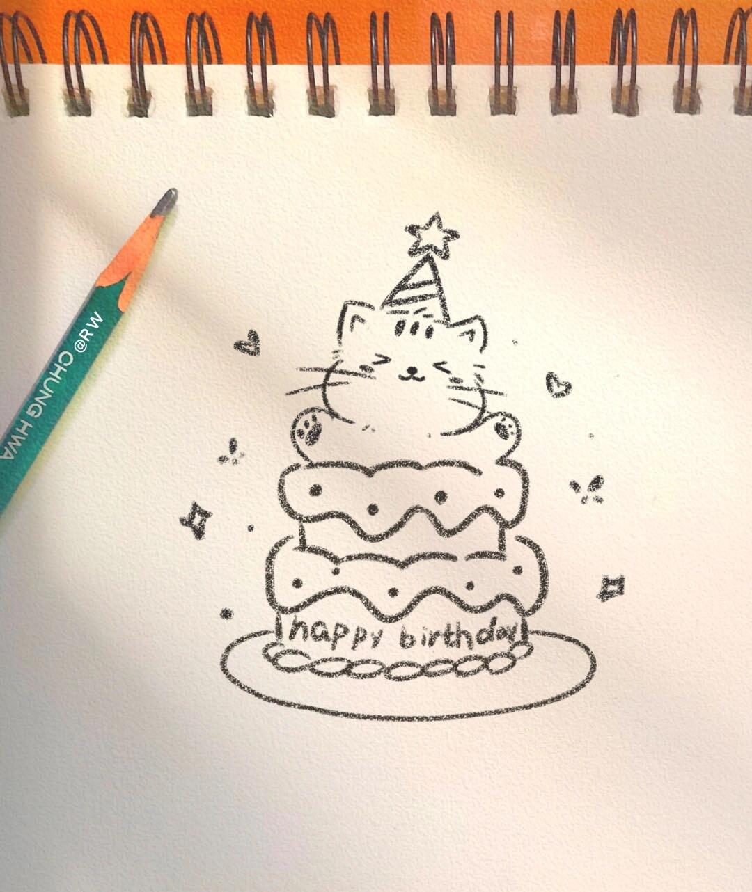 今天我为大家带来了一幅超级可爱的生日蛋糕简笔画