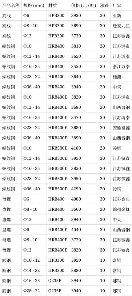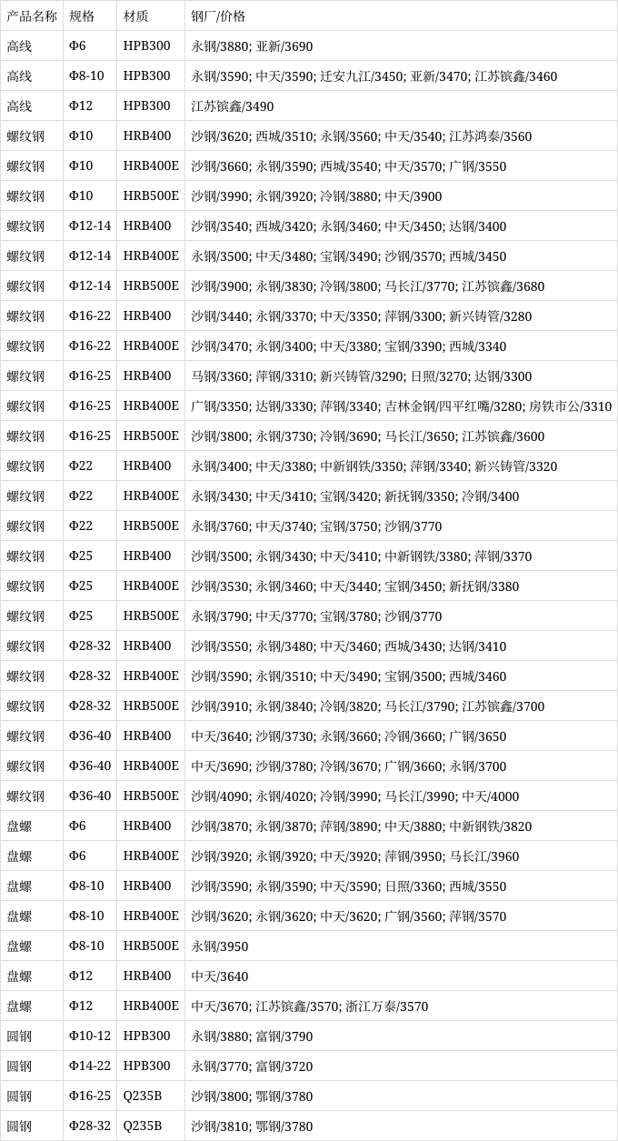 螺纹钢报价现货