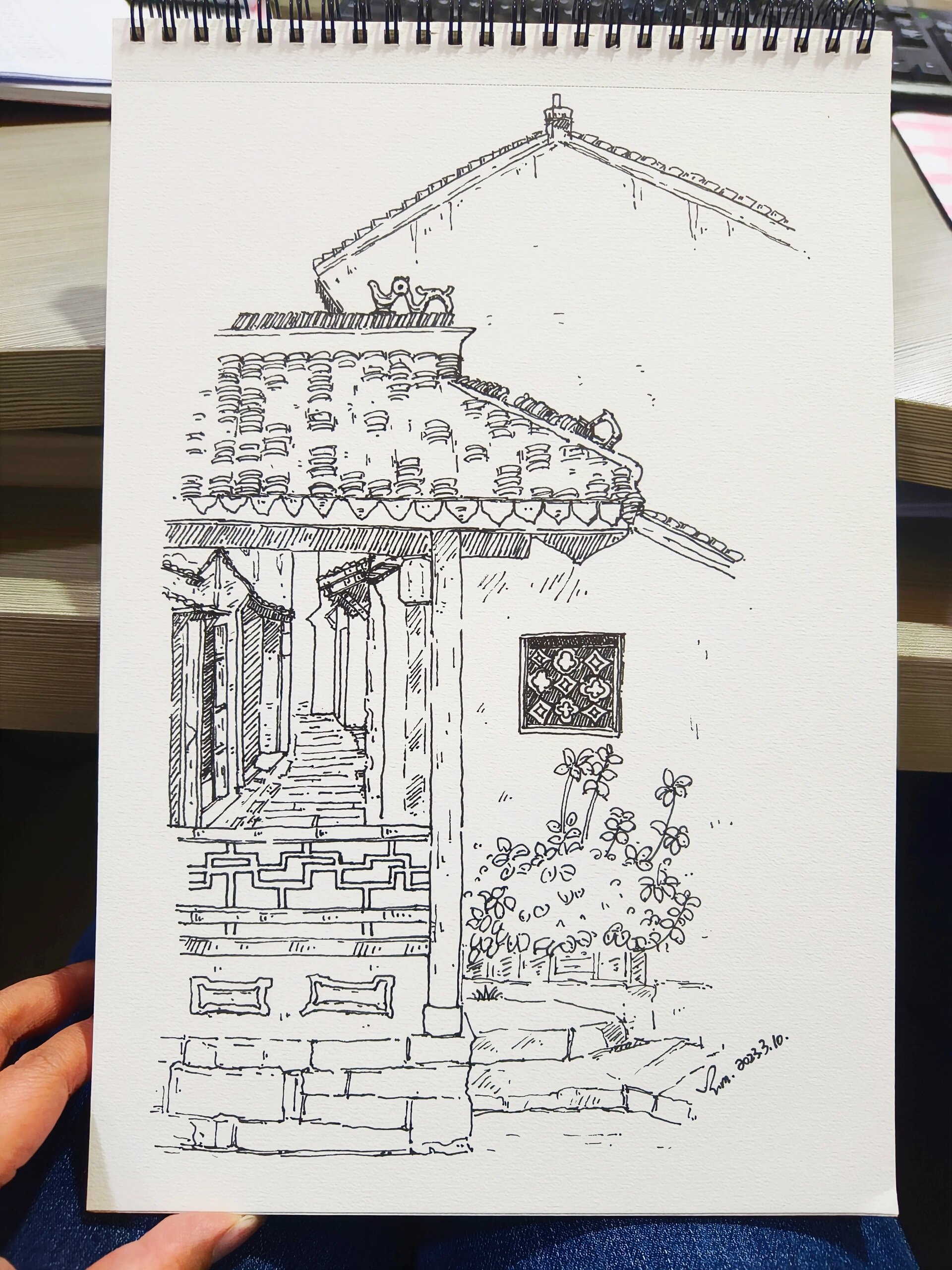 震泽古镇写生.写生寺庙难度不小.#风景写生 #古镇风景 #江