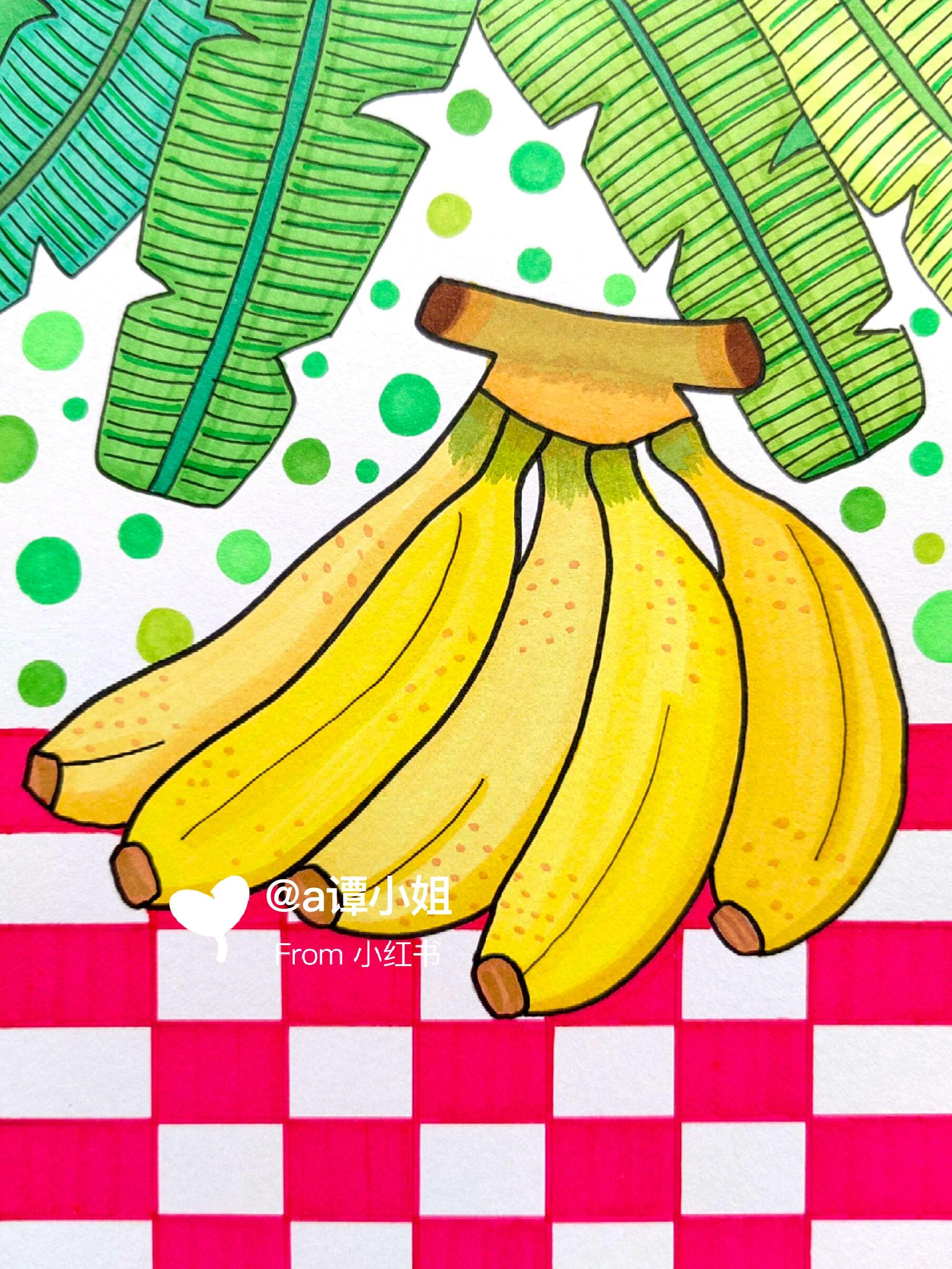 香蕉简笔画.宝子们,今天画了扁平风香蕉简笔画,从线稿到上色都
