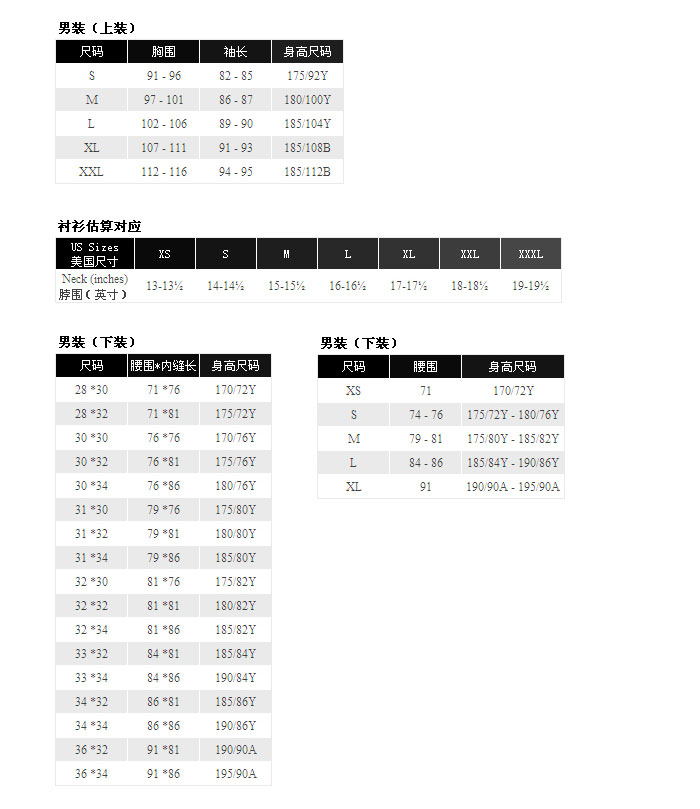 140/170-190(内长) 红色130/165/175-190(内长) 其余颜色尺码暂时无货